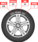 Look around the rim of your tyre for something that resembles (205/55 R16). This will be the tyre size you will require when ordering or calling.
